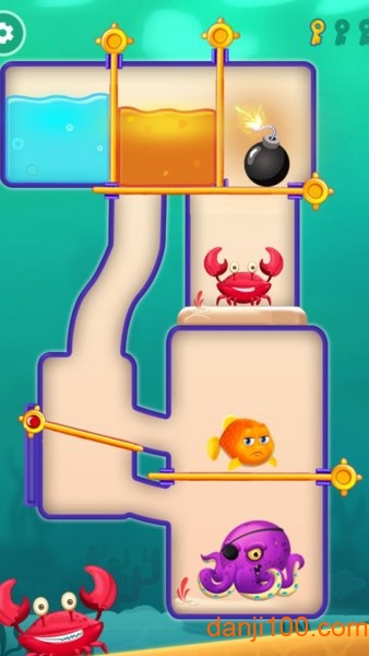 救救小鱼儿游戏是一款经典的拉针解谜手游,玩家需要帮助被困在机关中的小金鱼脱离险境。通过拔出正确的插销来为小鱼开辟逃生通道,但要特别留意那些阻挡污水的机关——一旦污水泄漏,小鱼就会遭遇不测。