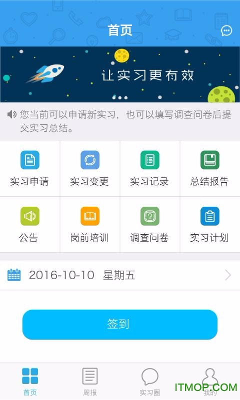 无论身处何地,通过Web、iOS、Android多平台,您都能高效完成签到、周报、企业互评等各项任务。在实习圈社区,与师生实时交流,获取专业建议。