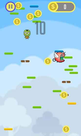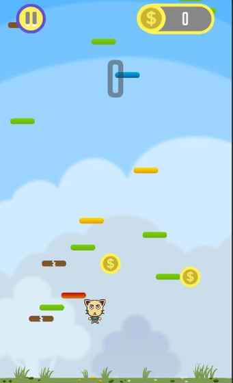玩家通过手机重力感应控制人物左右跳动,踩在平台上持续往上跳跃,每种平台都有不同的功能。