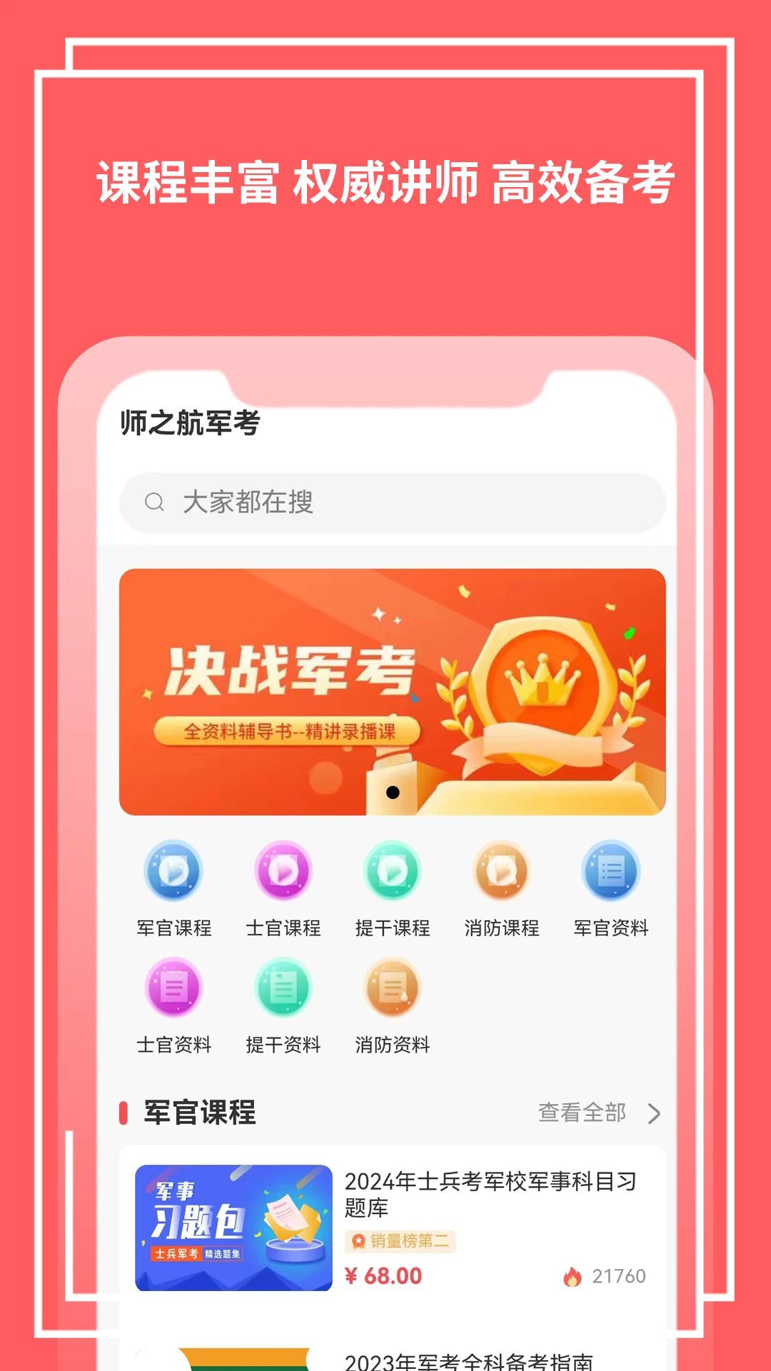师之航军考旗下APP,战友一站式,刷题、课程、资料、资讯全都有,