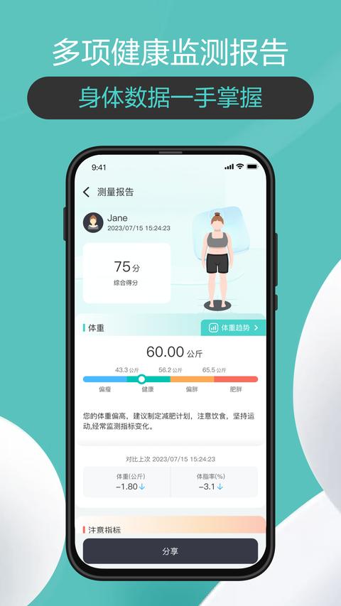 实时监测体重变化趋势,分析体脂率和肌肉量等关键指标