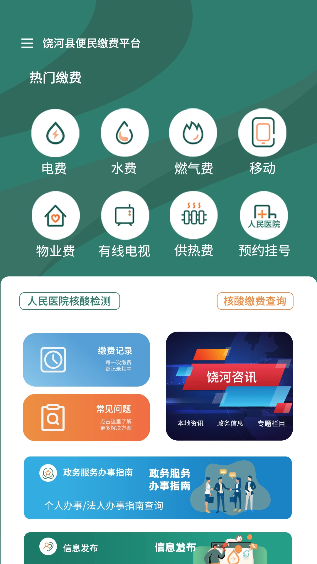 提供便民服务,方便饶河地区所在居民在线预约挂号,政务办事指南,信息发布,便民商城购物,惠民促销劵等生活服务功能,为老百姓服务