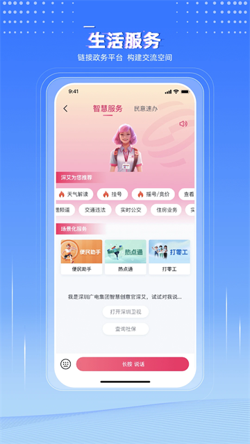 深圳通频道:立足深圳本土,为深圳人提供刚刚发生在深圳的事件;为深圳人提供深圳最新出台的各类政策及权威解读;为深圳人反映民意社情;为传播深圳城市文明,提供发布平台;提供与深圳人居家、旅行、社交息息相关的周边区域服务信息。