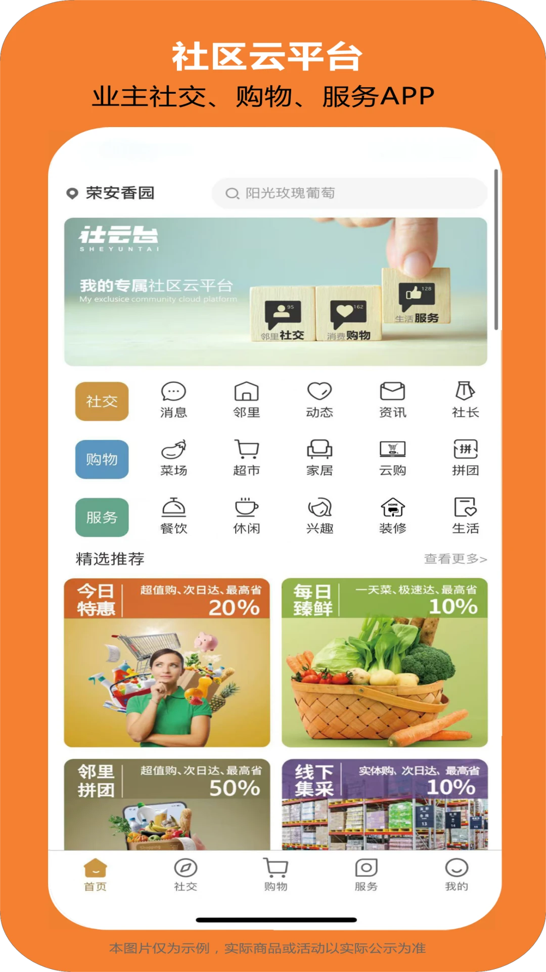 消费购物功能:整合本地超市、菜场和电商资源,支持拼团购物,满足日常需求。