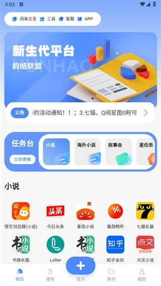 韵皓联盟,专为小说推文爱好者打造的优质平台!汇聚各大主流小说网站资源,一键转发即可轻松赚取佣金。平台提供海量热门文案模板,激发创作灵感,快速吸引读者关注。无论是时下爆款还是经典佳作,都能在这里找到。立即下载,开启你的推文赚钱之旅!