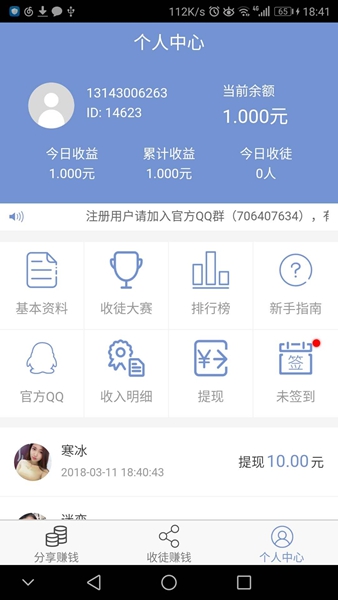 成功邀请好友可获得5元奖励,还能享受二级徒弟30%的收益提成