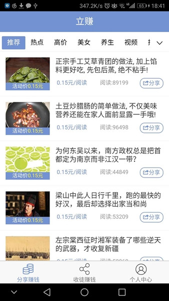注册即送1元现金奖励,文章被阅读单价0.12元,支持微信、群聊、朋友圈等多种分享渠道