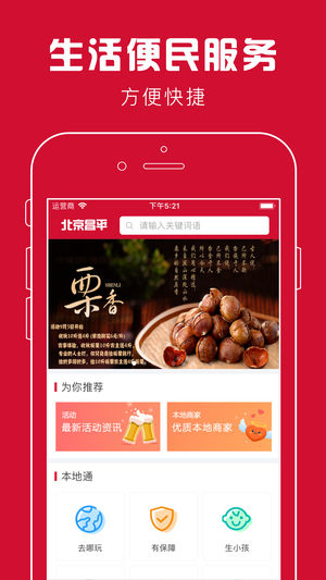 "北京昌平"APP拥有"去哪儿玩"、"有保障"、"要"、"开公司"、"生小孩"、"我的家"、"享晚年"等多个本地化生活服务版块,覆盖了、医疗、婚姻、生育、工作、旅游等多个领域,让本地居民可享一站式服务。