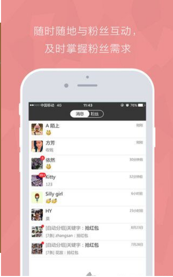 粉丝互动:即时接收并回复粉丝消息,支持粉丝分组管理和详细信息查询;