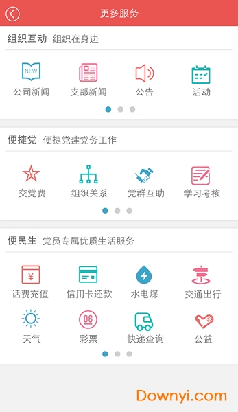 我的党建:在线申请加入党组织,接收重要通知和会议安排,支持电子签到、学习资料获取、思想汇报提交和党费缴纳等功能