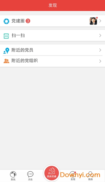 消息:党员专属即时通讯工具,支持多种沟通方式,提供组织通讯录和群聊功能
