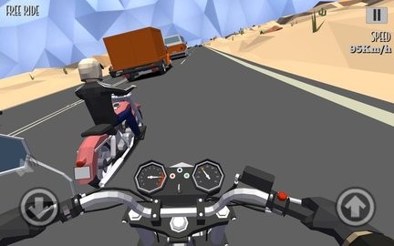 采用第一人称视角的驾驶游戏,核心玩法是操控摩托车在地图中闪避车流,不断突破自己的行驶记录。