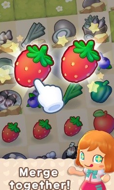 点击菜篮子来获得合并素材,将相同的水果或者蔬菜合并来获得更高等级的物品。