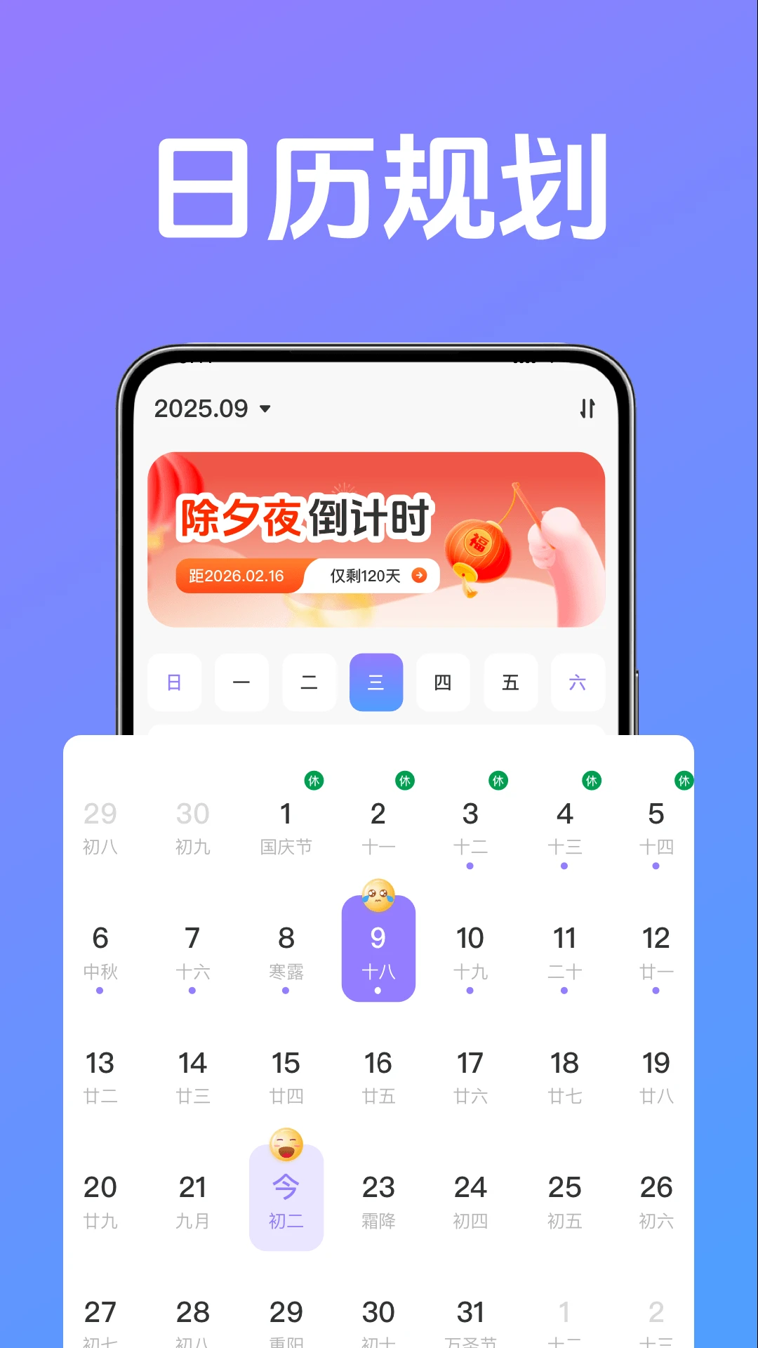 【日历规划与农历显示】