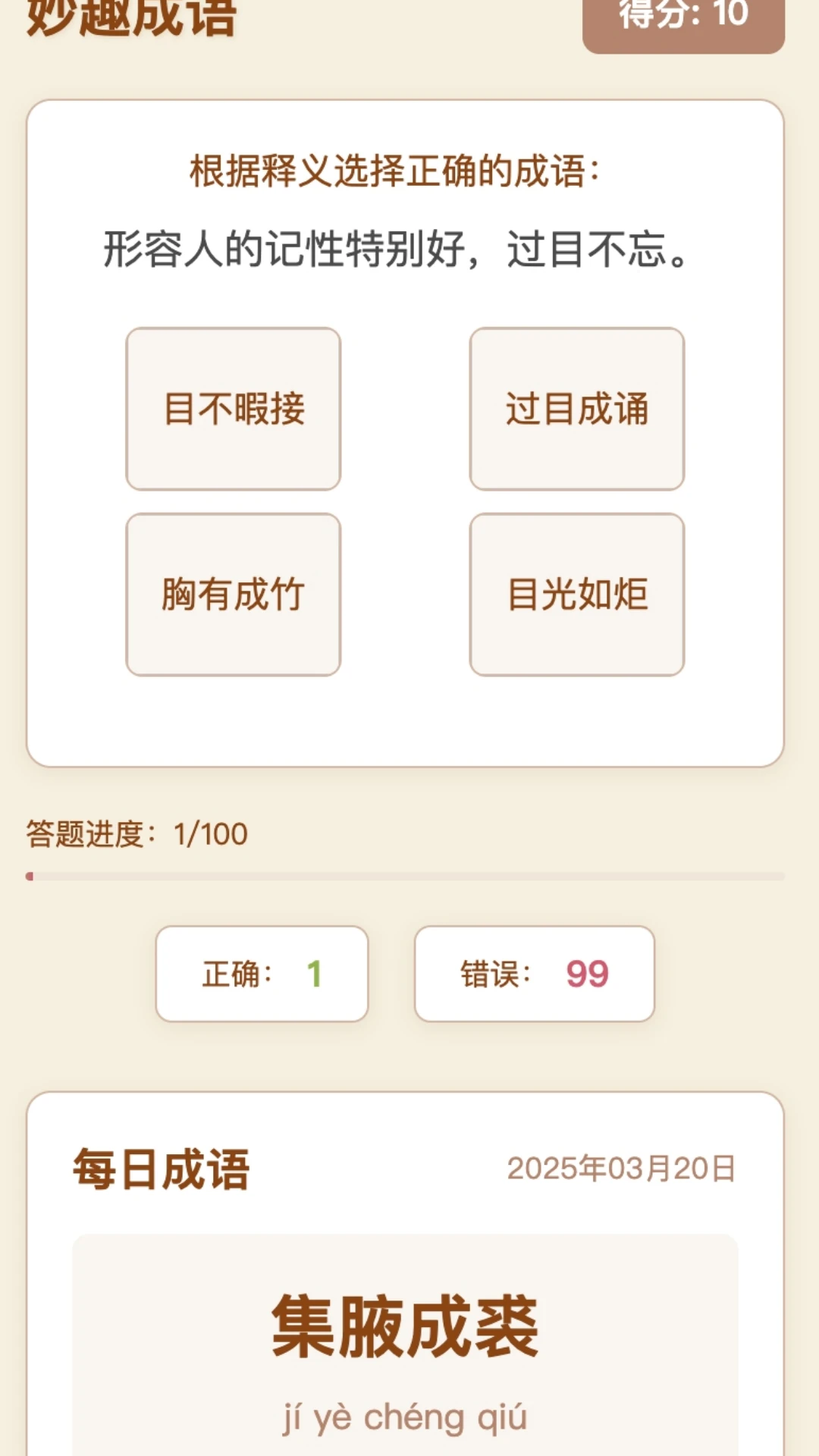 妙趣成语提供丰富的成语题库,涵盖从基础到高级的各类成语