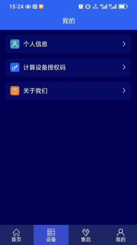 在个人中心就能查看个人信息,计算设备授权码等操作;