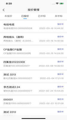 在移动端,邀请招标供应商进行报价、查看报价状态、中标状态,如:未报价、已报价、未中标、已中标等。