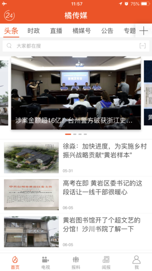 橘传媒app是一款专为黄岩地区用户打造的综合性资讯平台,集新闻阅读、视频观看、电视直播等功能于一体,内容实时更新,让用户随时随地掌握本地最新动态,是黄岩人获取资讯的便捷之选。