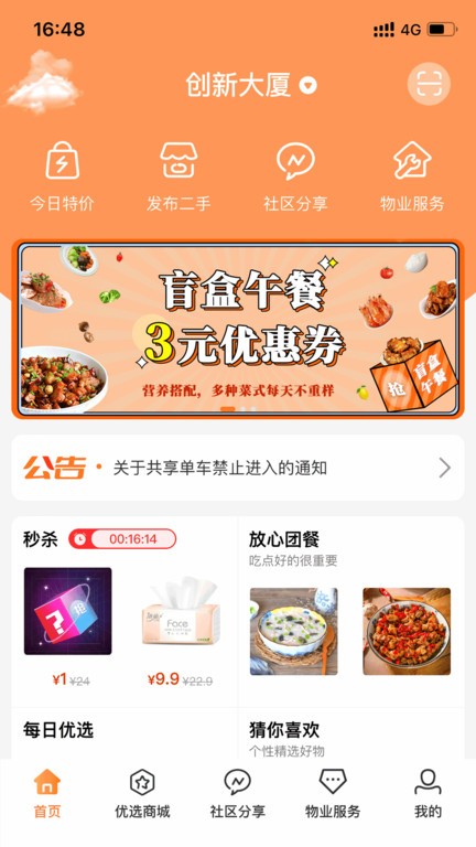 服务:为社区居民每日提供精选商品,天天有特价;