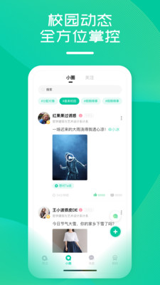 动态分享功能助力校园交友,结识更多志同道合的伙伴;