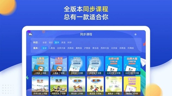 全国各地版本课本同步,紧跟教育部学校教材,年年更新;