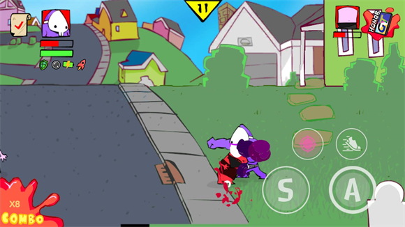 正式开始后左边控制角色移动,右边A键是轻拳,S键是重拳,鞋子图案的时疾跑。