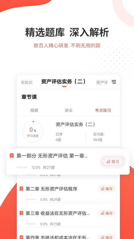 资产评估师APP有模拟考场、历年真题练习、每日一练、快速练习、考点练习、考试押题、做题记录等多种学习与做题模式、丰富多样化的陪你一起考资产评估师。