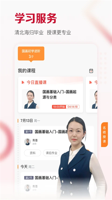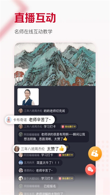 及象教育app是为热爱书法与国画艺术的用户精心设计的学习平台,致力于弘扬中华传统书画文化。这款软件汇聚了丰富的教学资源,书法课程包含软笔、硬笔等多种形式,涵盖行书、楷书、隶书等经典字体;国画课程则包含山水、水墨、人物、风景等多样题材。平台拥有数千名专业教师提供在线直播指导,无论您是业余爱好者还是专业人士,都能在这里获得系统化的艺术提升。