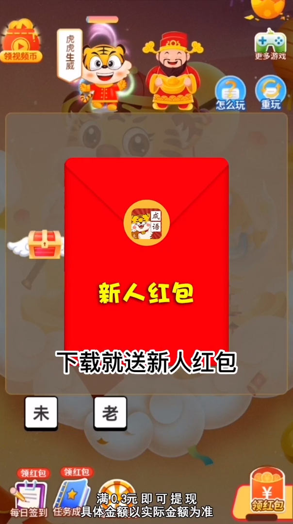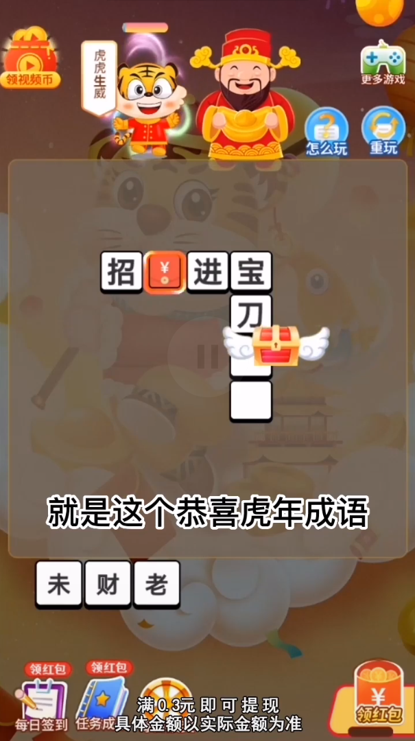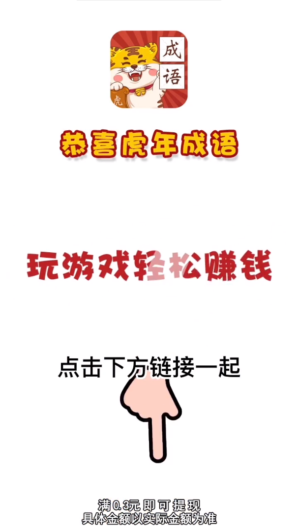 恭喜虎年成语是一款趣味十足的成语答题游戏,巧妙地将传统文化与红包奖励相结合。游戏设置了丰富的成语关卡,每答对一题都有机会获得红包奖励,累计0.3元即可提现,操作简单到账快。