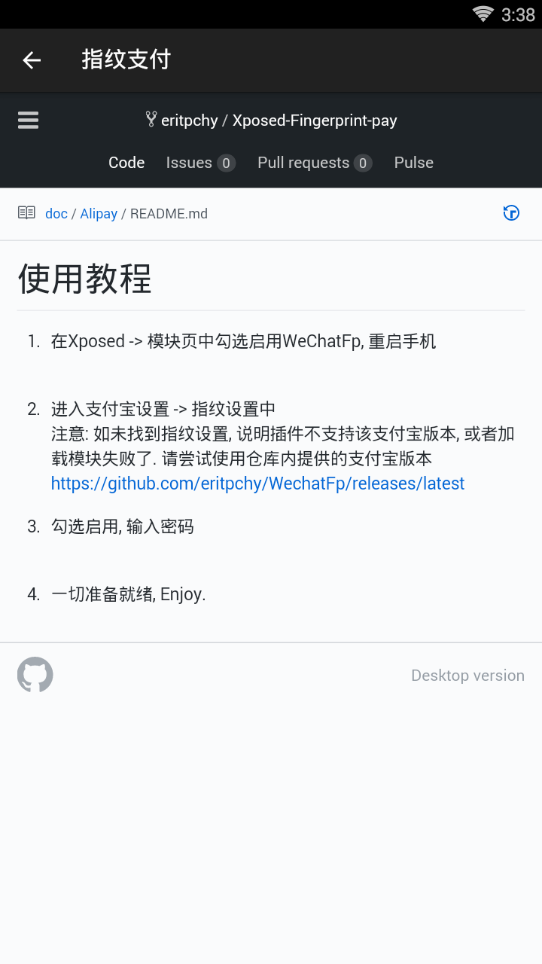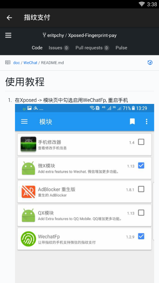 支持微信、支付宝、淘宝指纹支付,很方便,需要框架与已Root权限