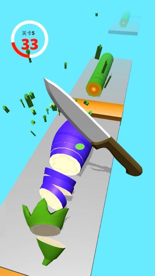 游戏采用动态传送带设计,各式各样的新鲜蔬果会源源不断地出现,等待你的飞刀将它们完美分割。