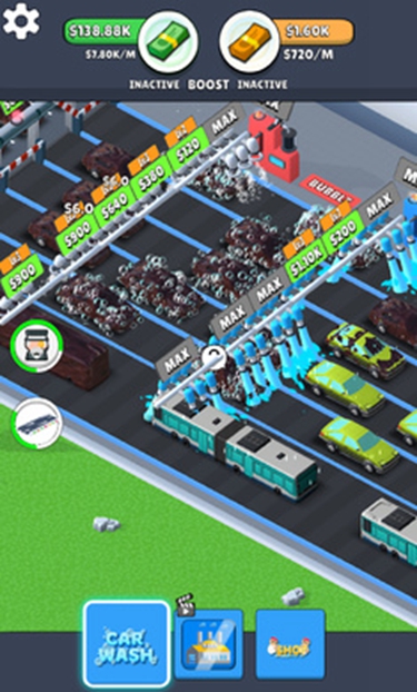 通过完成各类经营任务解锁先进设备,逐步提升洗车店的专业水准。