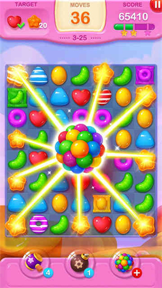 《糖果狂热2025》是一款适合全年龄段玩家的休闲益智游戏,玩家通过手指滑动屏幕将相同糖果连接消除,在有限的移动次数内完成关卡目标。游戏设置了丰富多样的挑战关卡,需要玩家巧妙规划每一步操作,体验紧张刺激的消除乐趣。