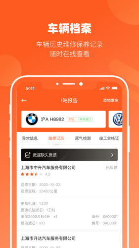 爱车档案:车主可通过绑定爱车,随时在线查看车辆历史维修保养记录,及时了解车辆情况。
