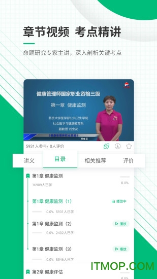 同步2020健康师的官方教材讲解,健康管理师考试每章节的重点试题有视频解析哟