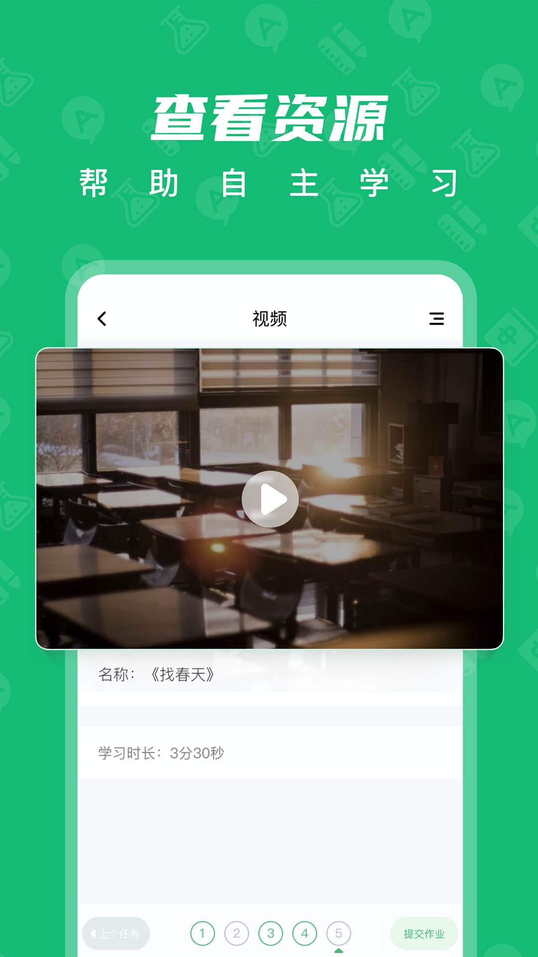 学生可以查看老师下发的作业,并可以查看作业中的学习资源,作答试卷和讨论活动,查看作业批改结果