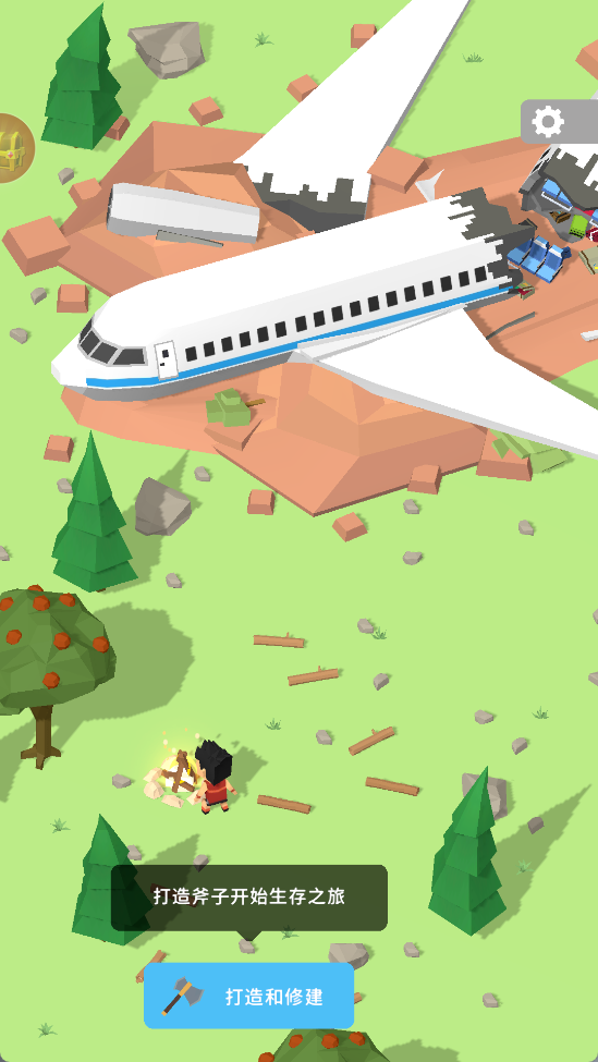 游戏开始时,玩家将以第一人称视角探索荒岛环境,完成系统提示的基础生存任务,如收集木材、寻找食物等。通过简单的点击操作,玩家可以搭建临时营地,确保基本生存需求。