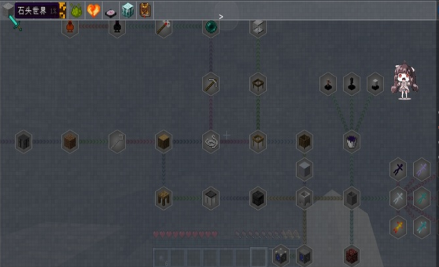 操作你的完成不同的工作挑战,合成一部分石头,来制作出科技树中的物品。