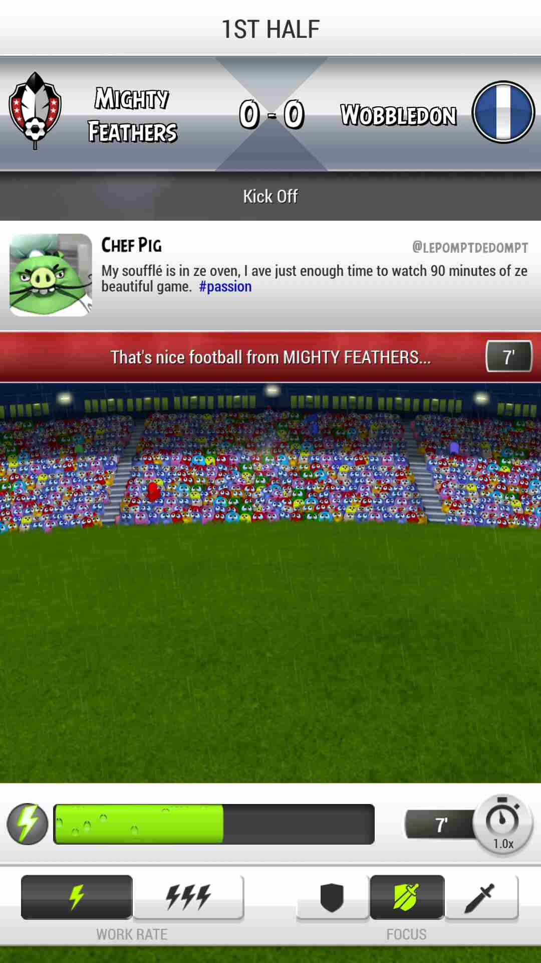 在愤怒的小鸟足球队中,玩家将接手"威猛羽毛"队的运营工作。这支由无敌鹰执教的球队目前战绩不佳,急需新鲜血液来重振雄风。作为新加入的球员兼管理者,你需要全面负责球队的训练、比赛和运营,带领这支队伍从低谷走向辉煌,最终成为鸟岛最耀眼的足球明星。