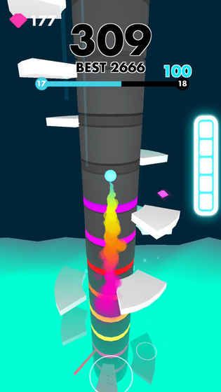 twist 要玩法就是需要玩家操控一只黑色的球球猫,在一个通天塔上一直往上跳跃,通天塔的底部会不断的塌陷,玩家想要活命就必须要一直快速的往上逃命,游戏中人物操控感非常"硬",有一种当年操作小霸王游戏的感觉,当球球猫在天上的时候,玩家可以左右操作球球猫,这种设计可以让玩家的操作空间更大,但是伴随而来的就是游戏的高难度关卡设计。