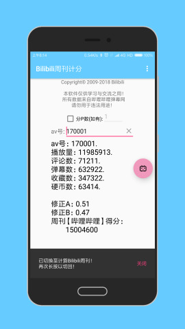 用于直接计算B站视频在【周刊哔哩哔哩】以及【周刊VOCALOID】中的得分。