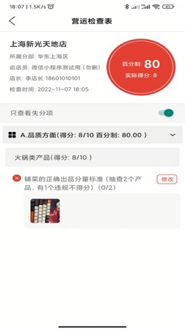 考标准:支持现场巡查、视频巡检、神秘顾客、评分系统等多维度考核