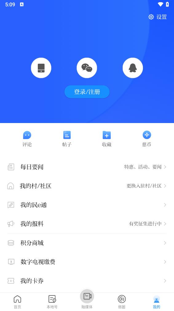 点击【慈晓】,进入首页,点击底部菜单"我的"