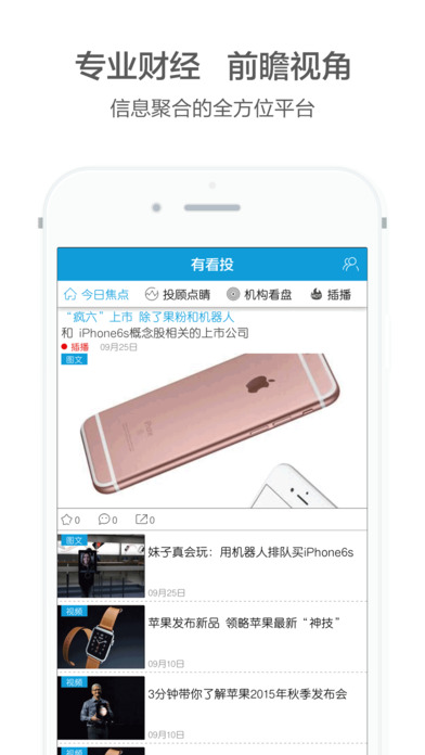 《有看投app》是一款专业的经济资讯平台,汇聚了海量优质财经媒体内容,为用户提供独到的市场视角和深度分析。在这里,您不仅能获取前沿的经济动态,还能掌握专业的投资策略,助您在瞬息万变的市场中把握先机。