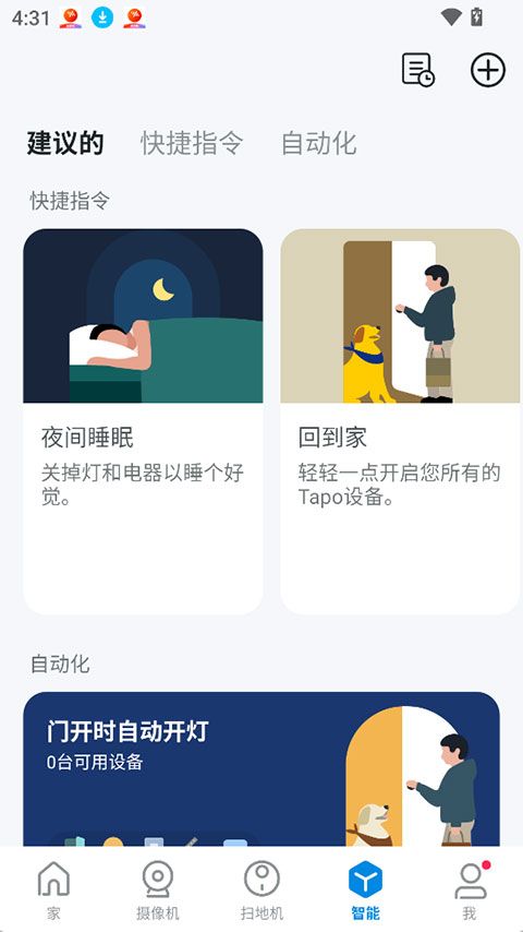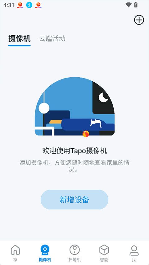 打开Tapo App,进入"家"页面,点击右上角添加图标;