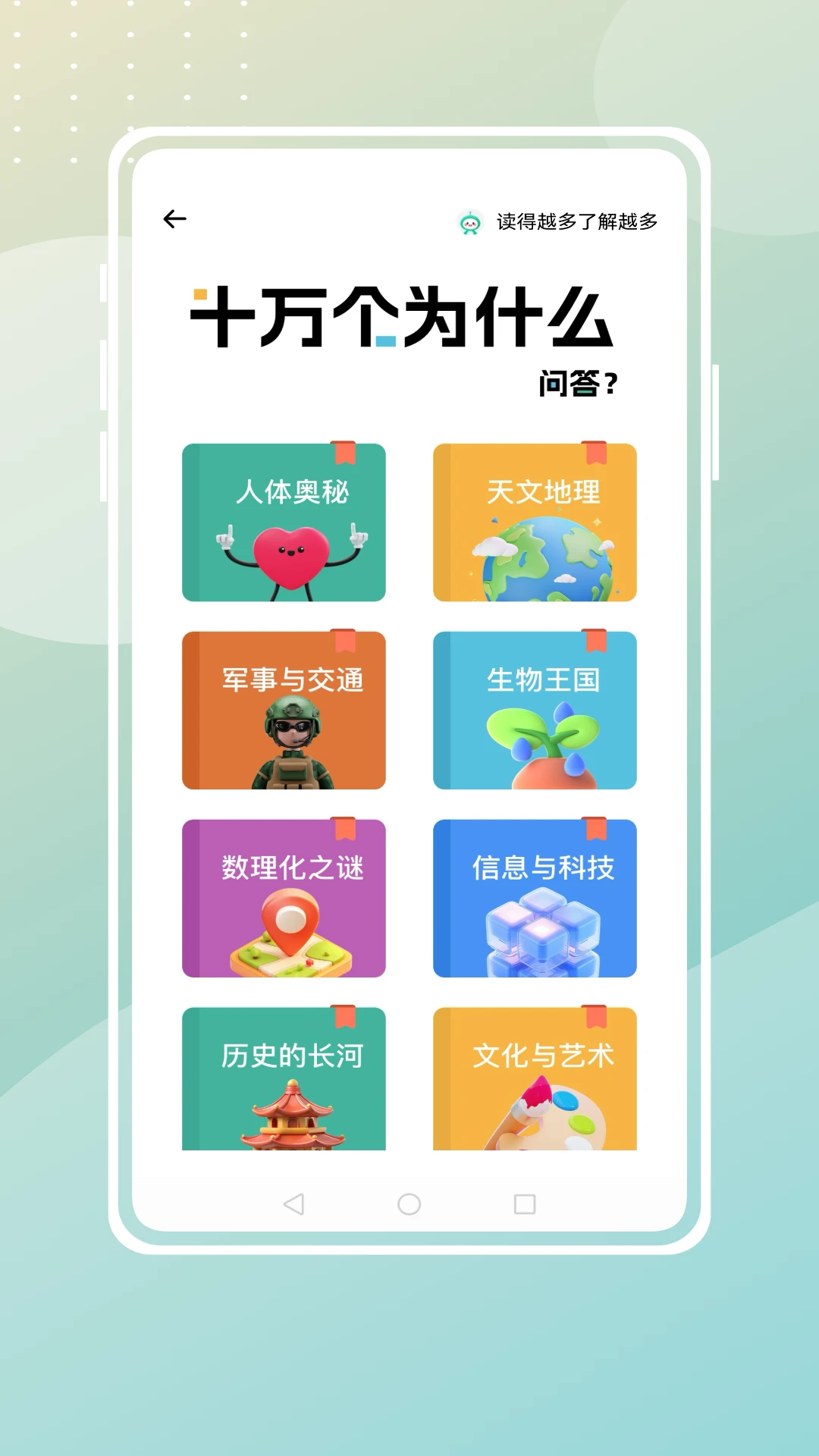 - 多元百科知识拓展 涵盖百科题库、十万个为什么、简说历史、古今地名等板块,内容涉及人体奥秘、天文地理、数理化等多元领域,满足你的好奇心,拓宽知识边界。