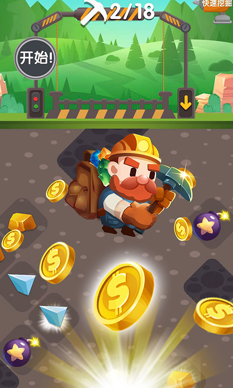 《神奇矿山》是一款充满乐趣的模拟采矿游戏。在这里,你将化身勤劳的小矿工,使用各式工具深入地下,开采珍贵的金矿与宝石。通过不断交易积累财富,升级采矿设备,探索未知矿脉,体验挖掘宝藏的无限乐趣。现在就加入这场掘金冒险吧!