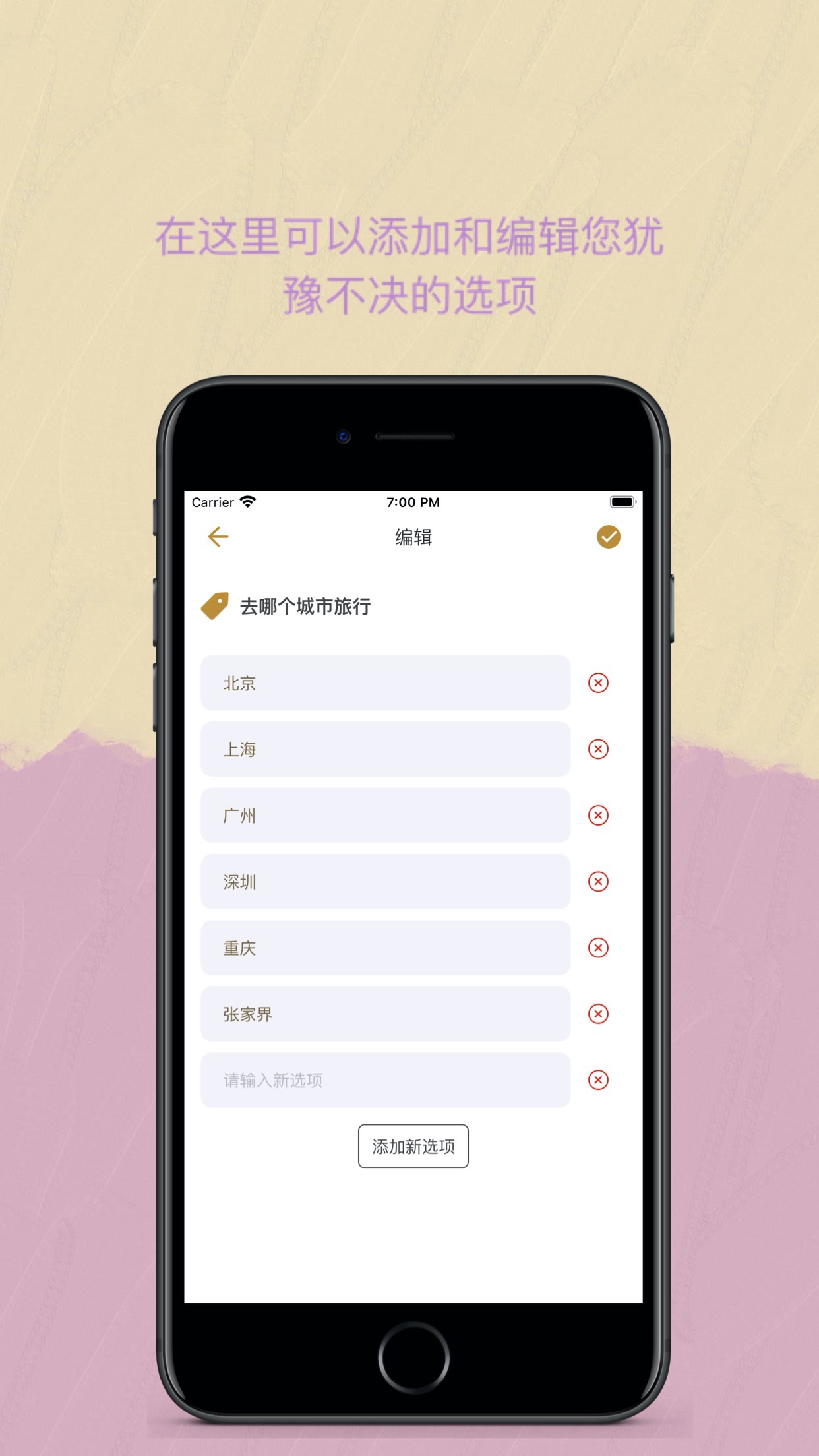 Easy决定app是一款专为选择困难症用户设计的实用工具,提供转盘、抽牌等多种趣味决策方式,操作界面简洁,支持完全自定义选项内容,让日常大小选择变得轻松有趣。