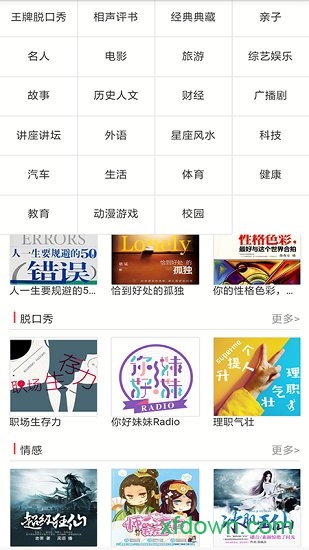 平台收录了包括悬疑惊悚、历史军事、古装言情、武侠玄幻、穿越题材等在内的各类优质有声小说。所有内容均经过严格筛选,为用户提供纯净的听书环境。此外,还整合了风水玄学、校园生活、财经资讯、相声曲艺、亲子教育、广播剧、动漫影视、脱口秀、人文历史、健康养生等多元化电台节目,打造全方位的娱乐收听平台。