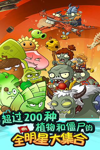 僵尸博士召唤了更多特色僵尸加入军团:猛犸僵尸、始祖鸟僵尸、蜂窝僵尸......植物、僵尸两组势力在全新关卡开战:危险神秘的原始世界、的长城、暗黑寺庙版的西游。到底谁才是赢家?一切由你决定!